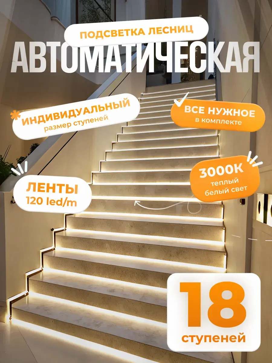 Автоматическая подсветка лестницы - это удобное и безопасное решение для освещения лестничных пролетов в темное время суток. Благодаря инфракрасному датчику движения, подсветка включается автоматически при приближении к лестнице, обеспечивая комфортное освещение без необходимости постоянно включать и выключать свет.